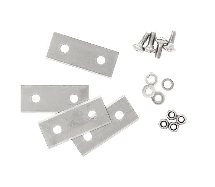 Teradega on kaasas ka uued kinnituskruvid, seibid ja mutrid. H750 ja E1800 lõikekettal on kokku 3 tera ja E1600 ning 1600T puhul 4 lõiketera.